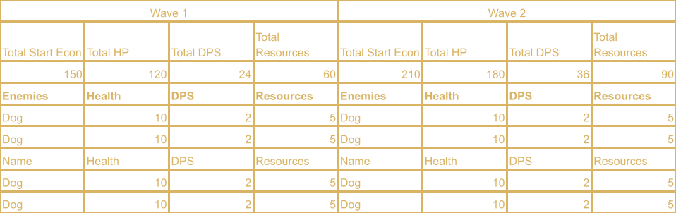 TreeKeeper features 6 waves that are balanced around the resource economy of passive generation and active generation from destroying enemies. Waves were created through a data table that automatically adjusted per any balance changes to tower, enemy, and economy stats. Each was designed through a flow of resources and damage resulting in a difficulty state that requires the player’s active attention to win. This comes after multiple playtesting sessions over the course of several weeks where I noted each player’s progress, spoken thought analysis of their thoughts, and major actions.